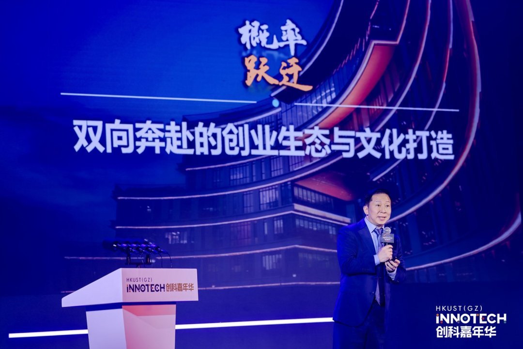 香港科技大学(广州)协理副校长(知识转移)熊辉教授发表了以“概率跃迁:双向奔赴的创业生态与文化打造”的报告。他系统阐述了学校推动知识转移的创新实践,强调需通过政府、投资人、学校、师生等多方主体的“双向奔赴”,共同构建可持续的创新生态体系。熊辉教授重点分享了人工智能对当今教育理念和教育体系产生的挑战。他认为,在数字时代浪潮的汹涌冲击下,无论是教育领域、知识成果转化环节,还是各行各业的赋能与发展,都应当从人工智能的视角出发,重新审视和探索其中的无限可能。