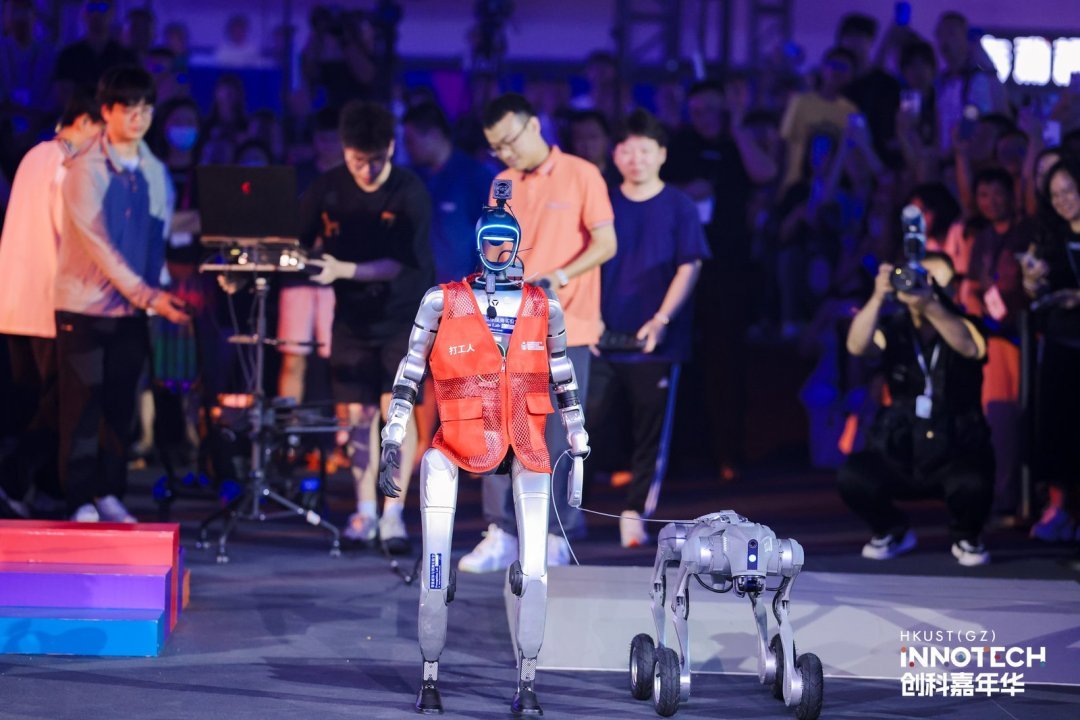 其中,由香港科技大学(广州)助理教授梁俊卫团队研发的人工智能大模型,为人形机器人和四足轮足机器狗赋予了智慧大脑,充分发挥机器物理潜能,这种独特的双模运动能力,使其在搜救、巡逻、物流等复杂环境任务中展现出巨大潜力。