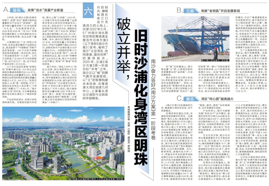 从旧时沙浦到湾区明珠,南沙用“破”的勇气撕开发展藩篱,用“立”的智慧构建未来优势,实现了从蓝图到现实的精彩跨越。站在新的起点,南沙正以更开放姿态拥抱世界,持续发挥粤港澳大湾区新引擎的澎湃动力,向着更加辉煌的未来全速前进。