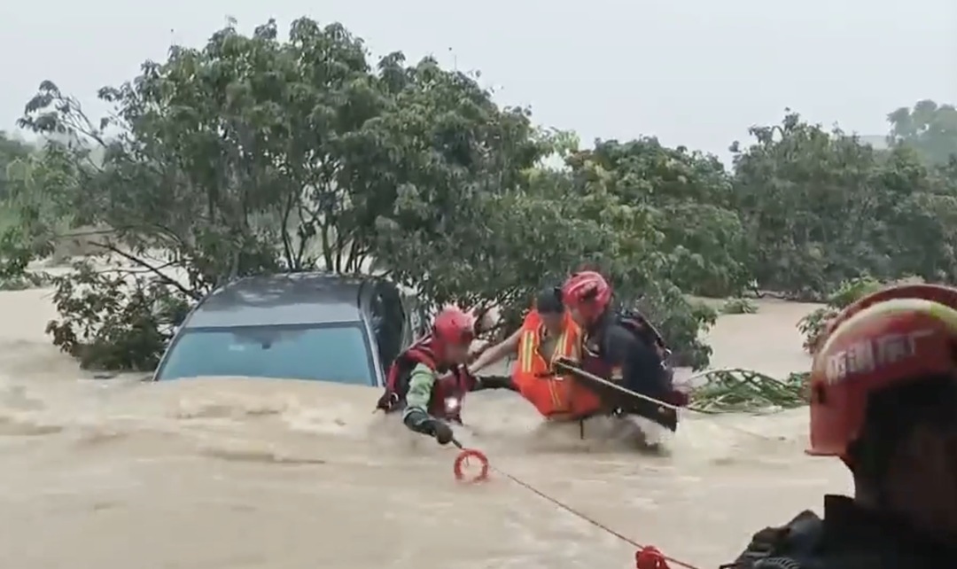 记者从广东省消防救援总队获悉,2025年6月16日8时43分,广东省茂名市消防救援支队指挥中心接到警情,茂名市高州市金山街道金竹山村有一辆小轿车被急流冲走,1人被困车内,情况紧急。