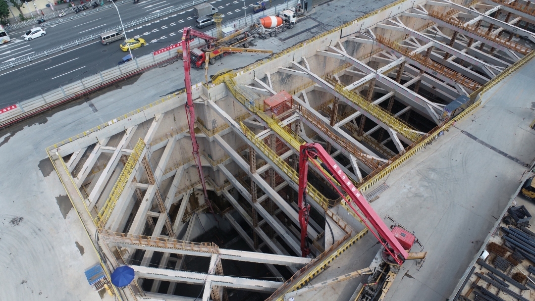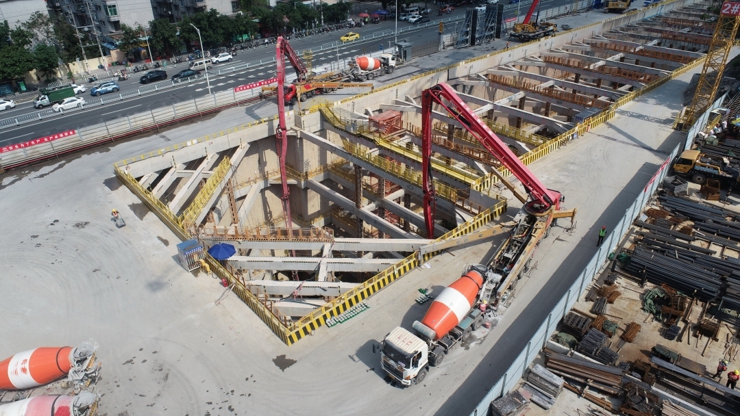 面对地质条件复杂、周边环境敏感等诸多挑战,广州地铁会同中铁十八局等参建单位通过严格执行“分层、分步、对称、平衡、限时”的开挖原则,采用“地面、水位、土体、墙体、支撑”全方位监测体系,并通过精密仪器与BIM信息化系统,确保了深基坑施工安全可控。车站所处花岗岩地层,建设者创新采用微差爆破与静力爆破相结合的方式,将爆破振动控制在安全范围内,有效保障了周边建筑物的结构安全。