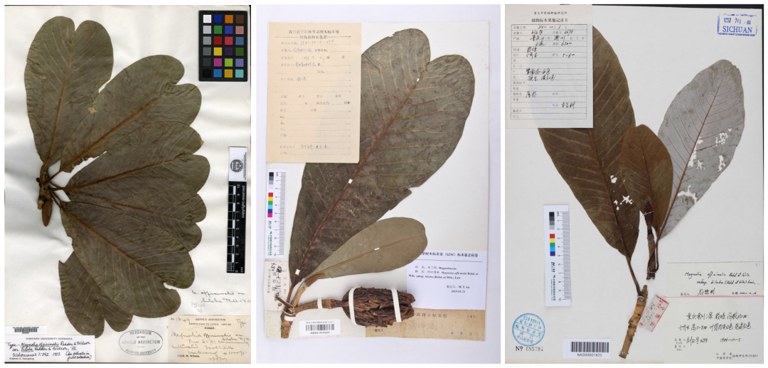 凹叶厚朴叶尖形态变化的三份标本