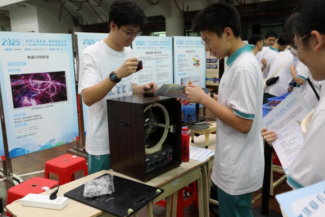 据介绍,科学教育节成果展不仅集中呈现了各个学科成果,也有助于激发学生探索科技的内驱力。活动覆盖9大学科、20多个互动项目,吸引了中国科学院南海海洋研究所、广东空天科技研究院、中山大学航空航天学院和大气学院等科研院所、高校以及一批高科技企业参展,前沿科技“硬核”十足,学科互动“趣味”拉满。作为全国中小学科学教育实验校、广东省青少年科学教育特色学校,广州市第六中学坚持将科学思维融入日常教学,通过校本教研、科学社团、实践竞赛等多元途径,培养学生核心素养。
