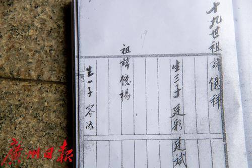 族谱记载冼星海祖父容添的名字。