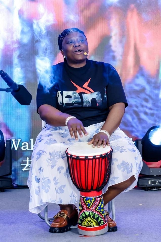 非洲鼓点燃世界心跳: 喀麦隆的 MBELE NDEKE EPOUSE FONDJA EUNICE 带来的非洲鼓展示《哇咔哇咔 (非洲时刻)》鼓声雄浑激越、节奏奔放,瞬间点燃全场热情。