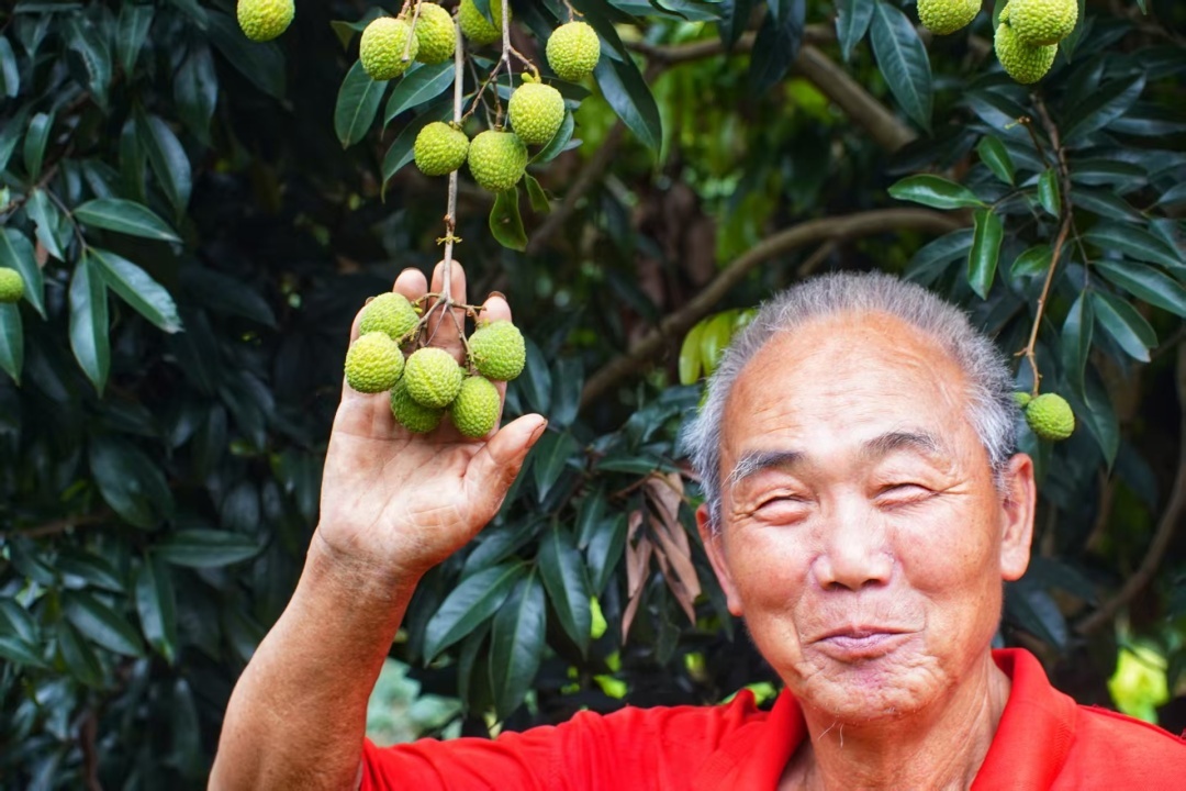 图:陈先生和西园挂绿荔枝。