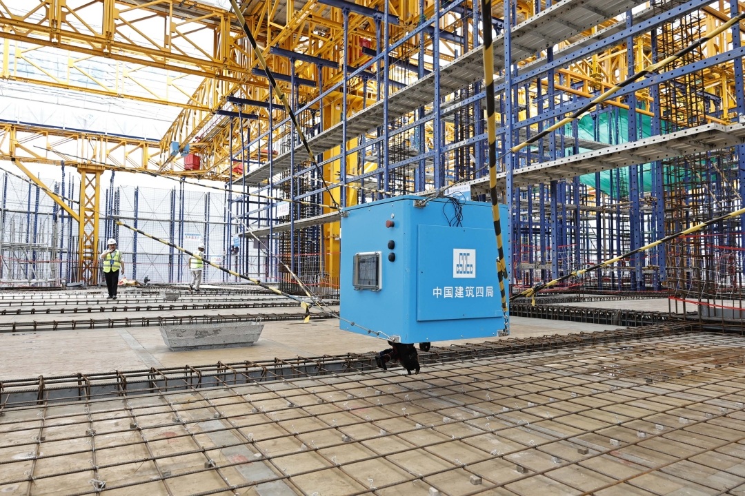项目采用中建四局自主研发的第三代云端建造工厂,首次实现近3000平方米“核心筒+外框”全覆盖钢平台,通过智能化、模块化技术突破传统建筑施工瓶颈,施工效率提升30%,预计整体工期缩短约10%。项目运用数控建模技术和造楼机技术,对废料进行收集、运输、分拣,实现混凝土余料回收率90%以上。通过数字建造管控平台对施工进度、资源利用及质量控制等进行实时监控,实现项目建设可视化管理。