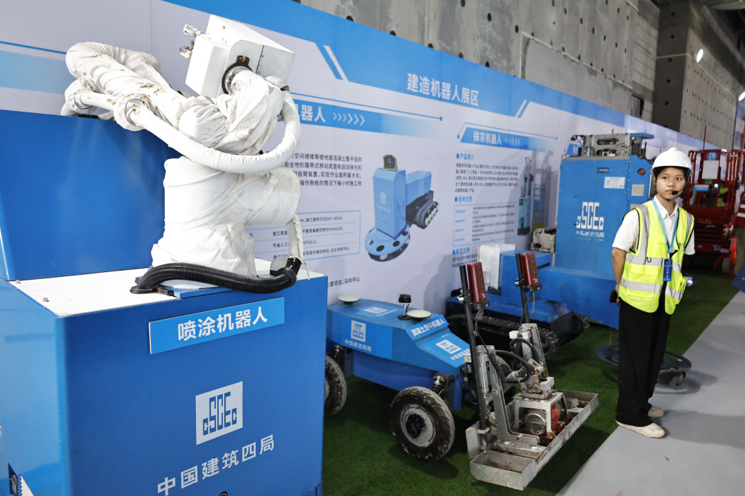 本次活动通过“现场展示+云端直播”方式,集中展示了云端建造工厂内索驱式钢筋绑扎机器人、安全巡检机器人,整平抹光、抹灰、喷涂机器人,以及智慧安全VR体验馆、无人驾驶塔吊、无人驾驶施工电梯、AI安全识别、AI安全帽等智能建造前沿最新科技的应用情况,为全市智慧工地建设提供可复制的示范样板。