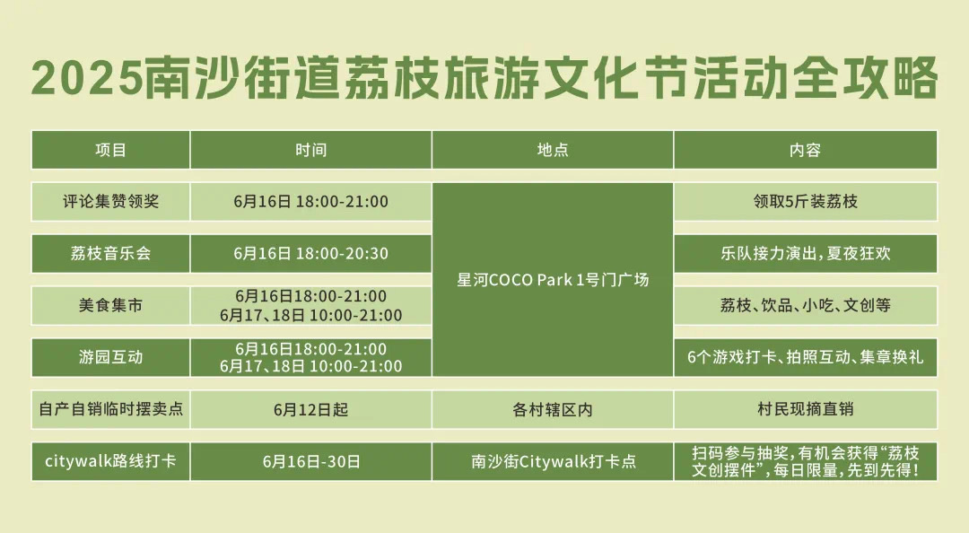 本地荔枝,现摘现卖,清甜爆汁,一试就爱上!你最想尝的荔枝味道,南沙街道准备好了。6月16-18日,南沙街道荔枝美食集市在南沙星河COCO Park 1号门广场开张。