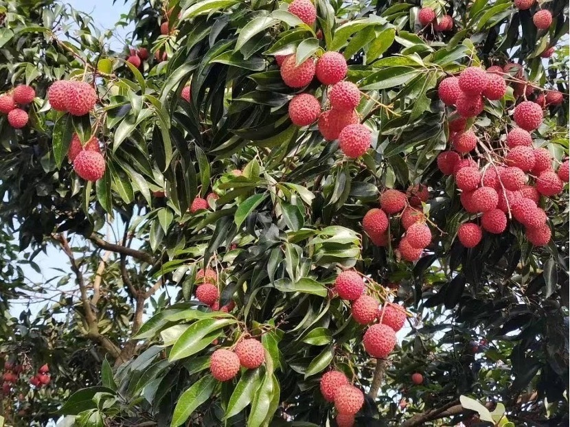 宁西多个荔枝园甜香四溢,荔果满枝,妃子笑已抢鲜于5月28日上市,桂味、糯米糍、仙进奉等晚熟品种也将陆续上市,集中上市时间为6月20日。