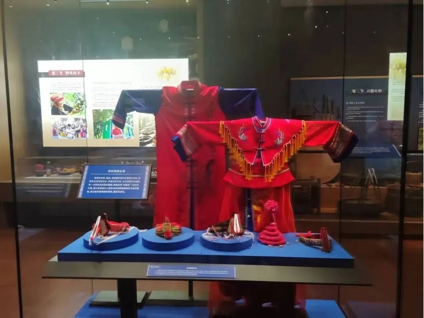 二层则系统呈现“畲族概况”“民俗民风”“生产生活”三大主题。馆藏丰富多元,涵盖彩带、银饰等精美手工艺品,各类生产生活工具,地方土特产,族谱仿制品,畲族男女及儿童传统服装,特色文创产品,并辅以电子屏及交互装置等现代化手段。