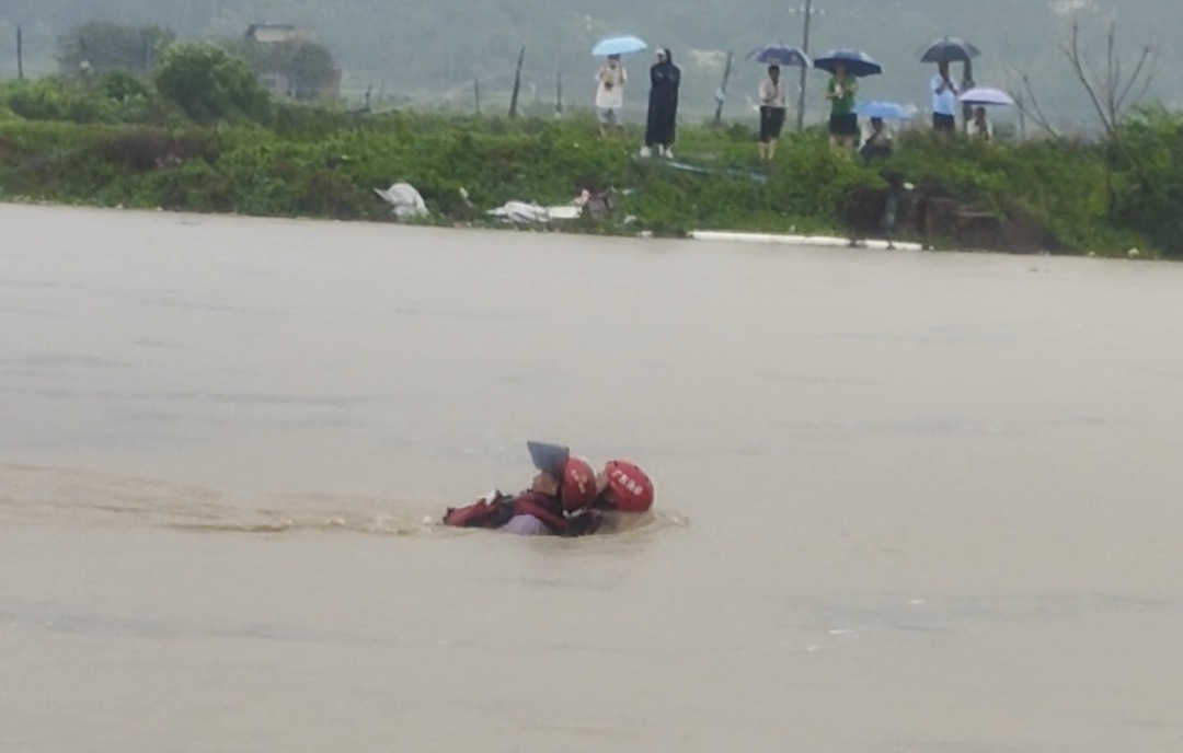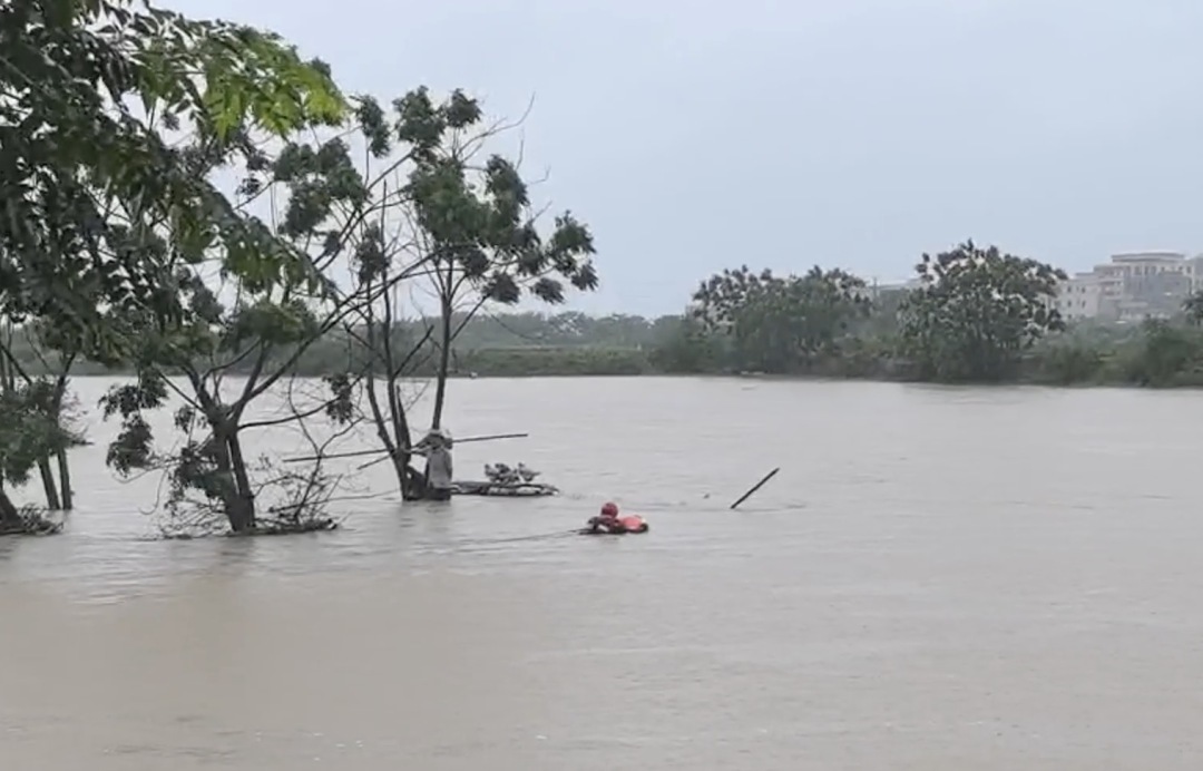 记者从广东省消防救援总队获悉,6月17日9时,广东省茂名市电白区电城镇河望村,因暴雨致水位上涨,一名群众被困河中,急需救援。接警后,电城消防救援站立刻出动2车11人前往现场救援。