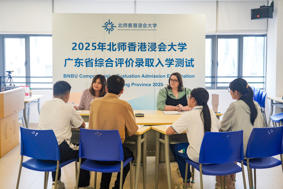 今年是北师港浸大第十三年举行广东省综合评价录取入学测试,采用线下全英文面试形式,分为“小组讨论”和“个人互动”两个部分,考生以三人或四人为一组,与考官进行互动,主要考查考生的语言流利度、沟通策略、逻辑思维、团队合作、组织能力等。