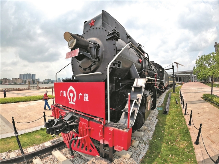 越秀区大沙头二马路旁,“广九铁路纪念园”内,铁轨枕木与绿皮火车在榕荫下散发出浓郁的复古气息。大沙头火车站旧址则成了占地8200平方米的“广九铁路纪念园”。