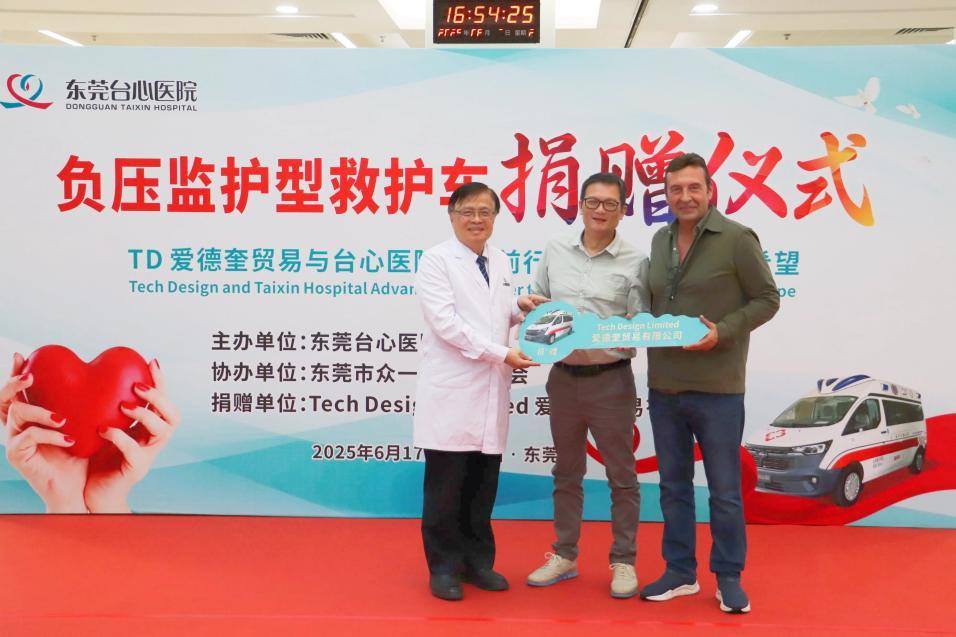生命赛道上,每一秒都至关重要;爱心传递中,每一份力量都弥足珍贵!昨(17)日下午一场救护车爱心捐赠仪式在东莞台心医院门诊部大厅举行,Tech Design Limited 爱德奎贸易有限公司向院方移交救助车钥匙,该救护车价值32.8万元,值得一提的是该车配备了负压隔离系统,可有效阻断病毒传播,从而为该院医护人员救治传染疾病患者注入强大助力。