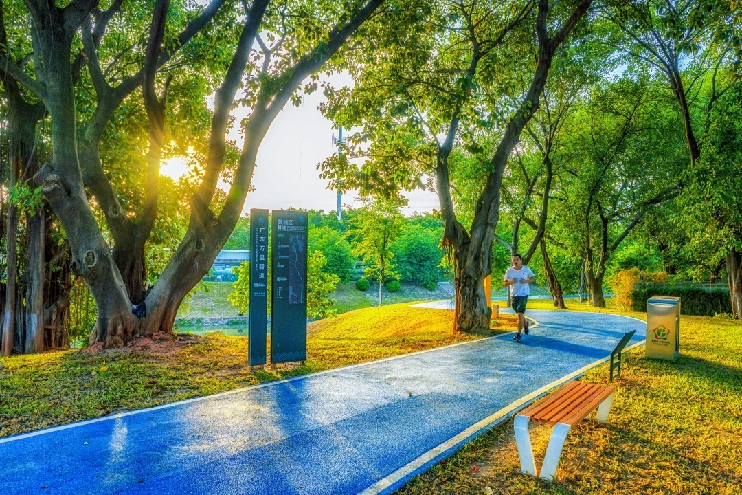 图:市民在南岗河畔万里碧道晨跑 吴伯钊摄