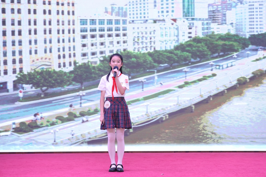 来自广州市越秀区中山三路小学的刘俊嘉同学有很强的语言能力。他用普通话、粤语、英语、德语、法语、西班牙语精彩讲述了“五大侨园”的沧桑历史与人文故事,展现了华侨文化的国际视野。