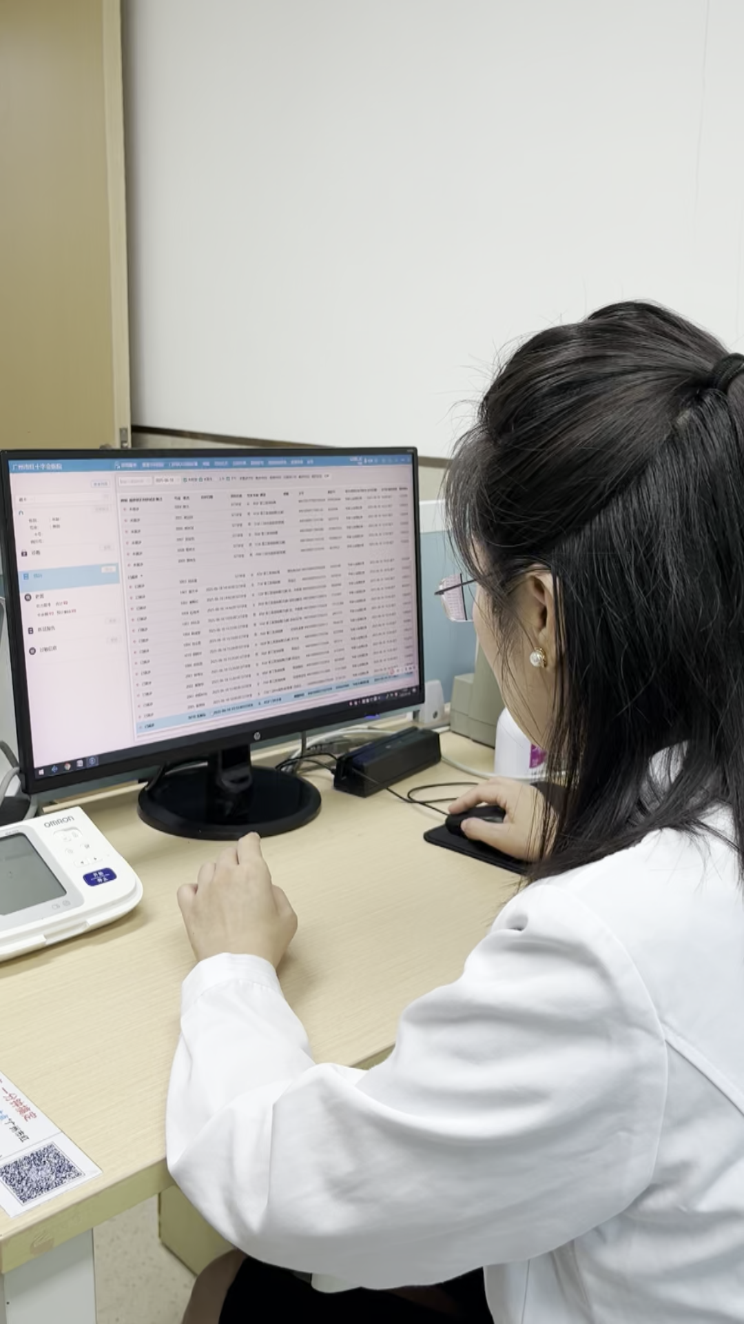 广州市红十字会医院心血管内科,医生为患者预约续诊号。