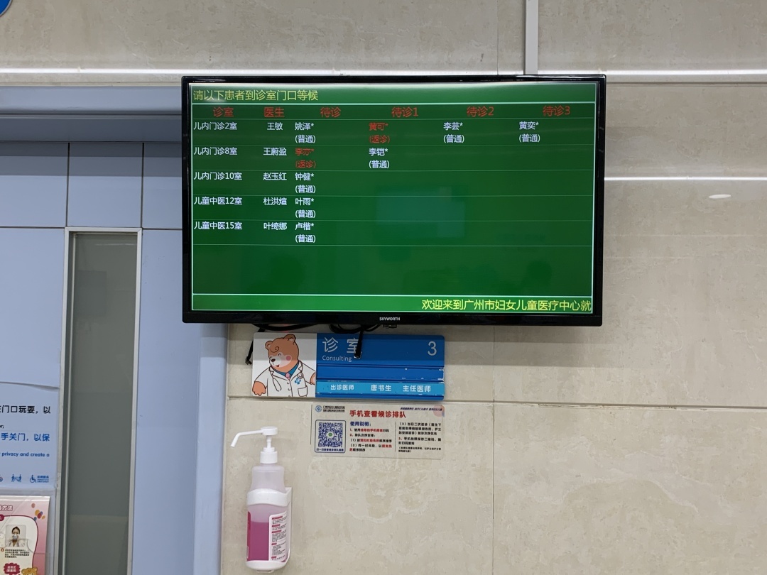广州医科大学附属妇女儿童医疗中心儿内科轮候列表中,有患者显示为“返诊”。