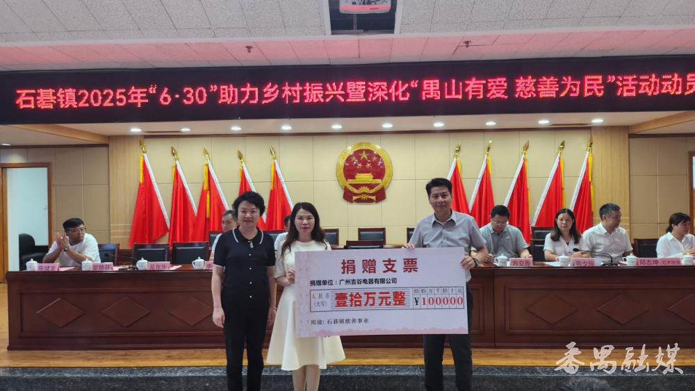 现场举行了爱心企业支票捐赠和石碁镇班子领导带头捐款仪式。广州莲旺纸品有限公司、广州吉谷电器有限公司、广州市番禺永华家具有限公司、广州市华创动漫产业园有限公司和广州市番禺区石基镇个体私营企业协会共计捐赠53万元。