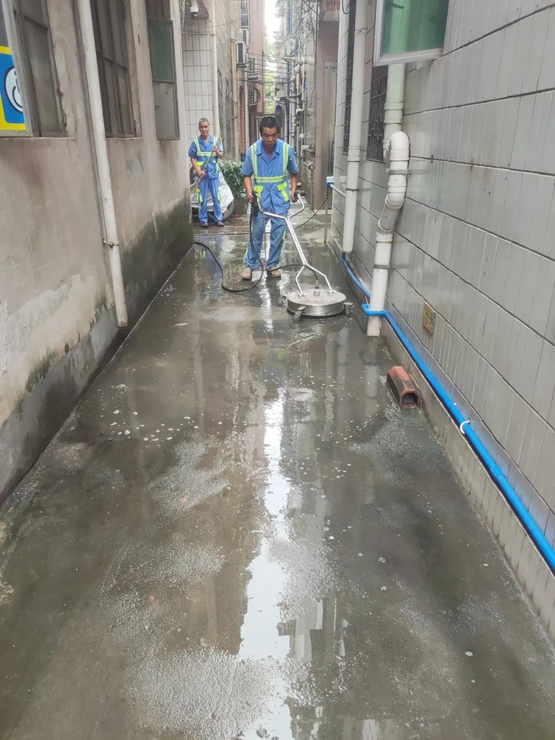 专业清理,确保安全。针对青苔湿滑难清除的特点,环卫工人采用“人工+机械”相结合的方式,先用高压水枪冲洗路面,再使用专业刷具和环保清洁剂进行深度清理。对于狭窄巷道,环卫工人蹲身细致刷洗,确保不留死角。同时,在清理过程中设置警示牌,提醒过往行人注意安全,避免滑倒。此次清理行动共出动环卫工人40名,高压冲洗车5辆,打磨机2台,清理街巷约30条,清理青苔覆盖面积超过800平方米。