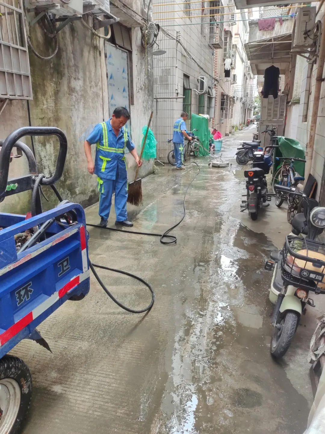 近期,受持续强降雨影响,部分背街小巷因潮湿积水滋生青苔,路面湿滑,不仅影响了市容环境,更给居民出行带来了安全隐患。为确保市容整洁,保障市民安全,日前,黄埔区文冲街道迅速行动,组织环卫工人开展“雨后清苔”专项行动,全力恢复街巷干净、安全的通行环境。