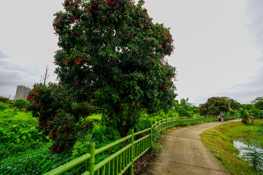 在广州市海珠区,不少地方也可见到荔枝的身影。6月18日,记者走访广州海珠国家湿地公园,发现部分荔枝树已进入成熟期。