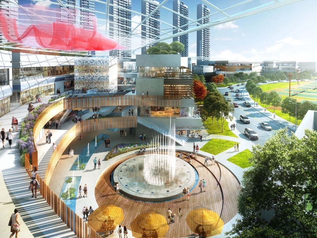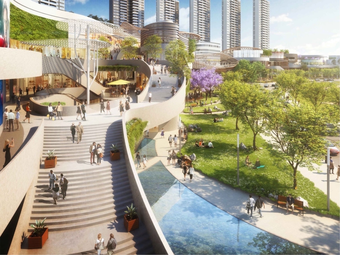 项目选址于南沙明珠湾起步区,毗邻南沙体育馆与南沙区青少年宫。由美国JERDE设计事务所操刀,设计灵感源于周边河流与湿地,运用水元素串联功能区,致力于打造为具有呼吸感的公园式开放商业街区。