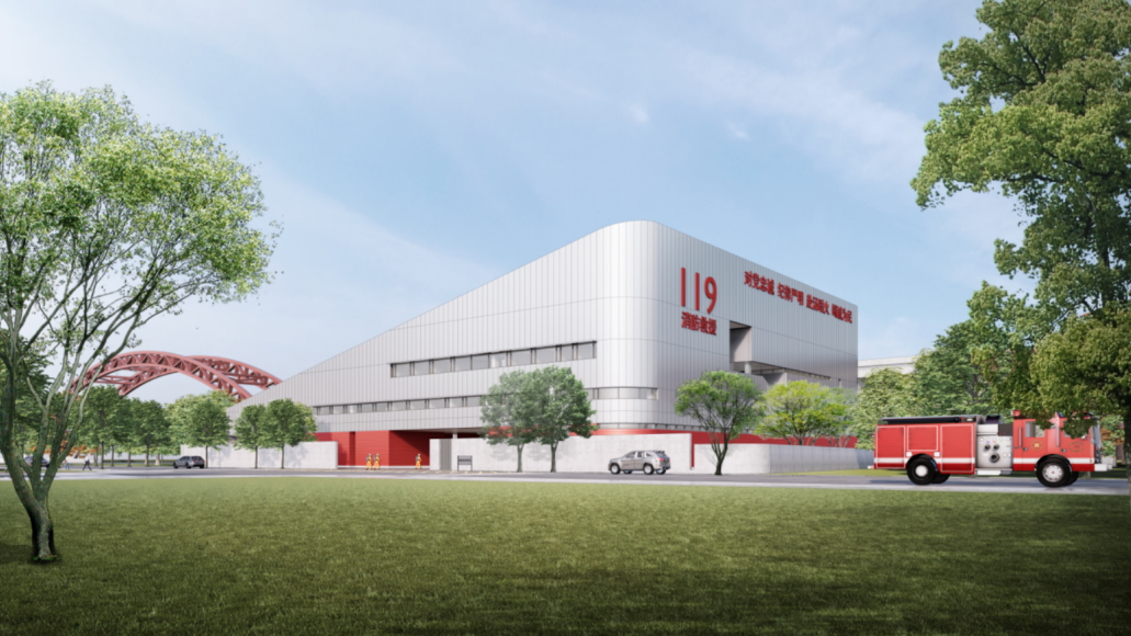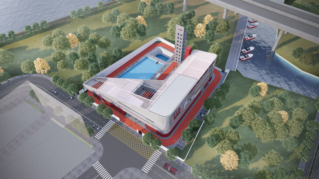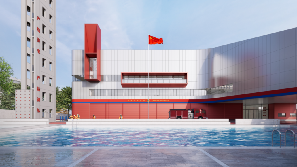 项目由全国工程勘察设计大师周恺主持设计,团队通过精细化设计和合理的功能布局,最大程度为场地配备水上训练池、环形跑道、训练塔、训练跑道、消防车回车场等必需功能空间。建筑主体抽象提取轮船、河流等意向,展现了消防战士坚毅挺拔的精神风貌。建筑内部贴心备足了图书室、会议室、俱乐部、文化长廊等功能空间,丰富消防人员学习娱乐需要,解决其后顾之忧。英雄默默坚守在人民群众最需要的地方,城市守望相助共建美好家园。