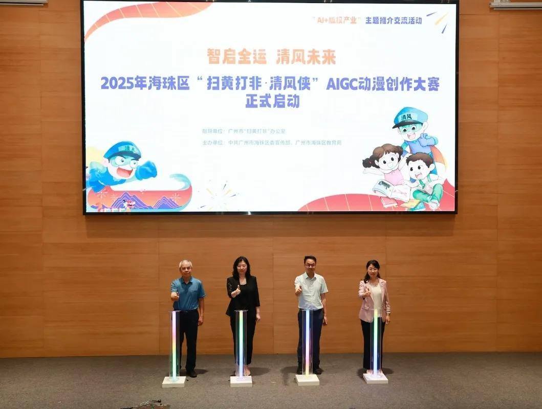 海珠区举办“‘清风侠’AIGC 动漫创作大赛”,邀请区内中小学生以“清风侠”为核心形象,借AIGC技术开展创作,为“网络护苗”注入创意力量,共同抵制不良信息。