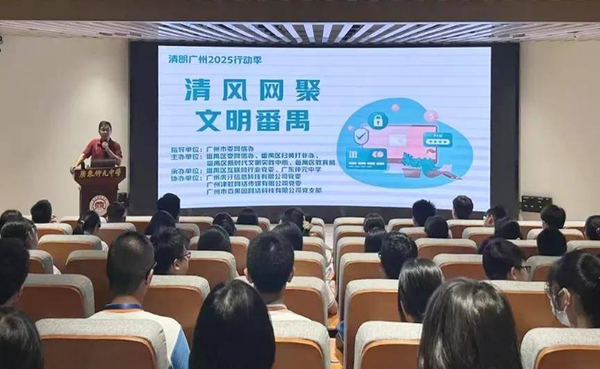 番禺区开展“清风网聚、文明番禺”网络素养教育进校园活动,举办网络安全科普宣传,防范线上线下交织风险,为未成年人网络环境保驾护航。