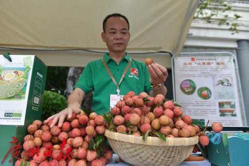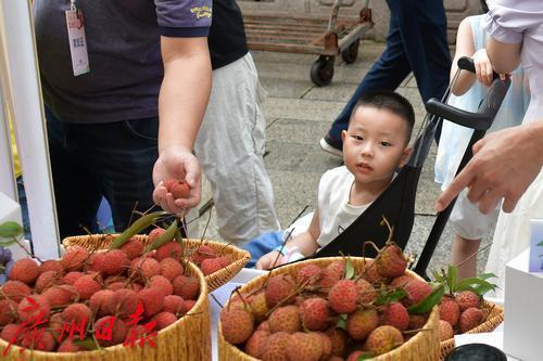 现场有荔枝展示以及荔枝文化鉴赏等摊位。