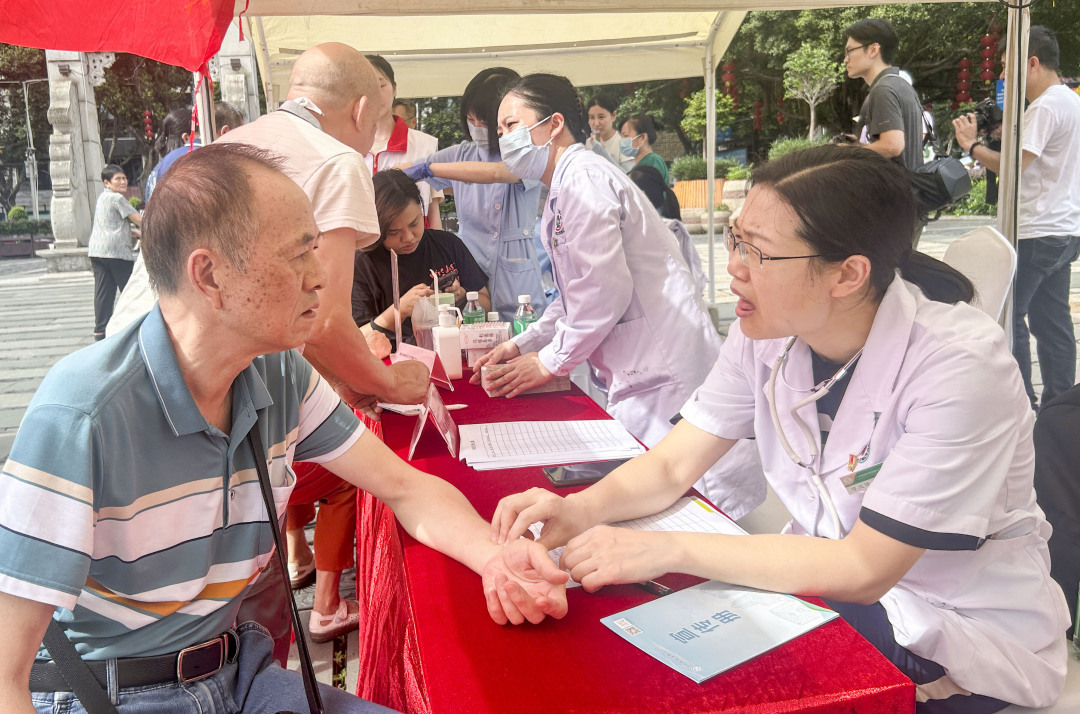 6月20日上午,广州荔湾区“荔集百草‘轻’体验”中医健康集市暨体重管理健康营在荔湾陈家祠广场启动。集市现场紧扣群众体重管理的需求,设立中医药文化宣传展览区、联合减重义诊咨询区、中医体重管理互动区、“轻盈体态·微课堂”、体重管理健康营共五大区域,让中医药非遗以更亲民、更生动的方式走进市民生活,累计吸引超过2000名市民参与体验。