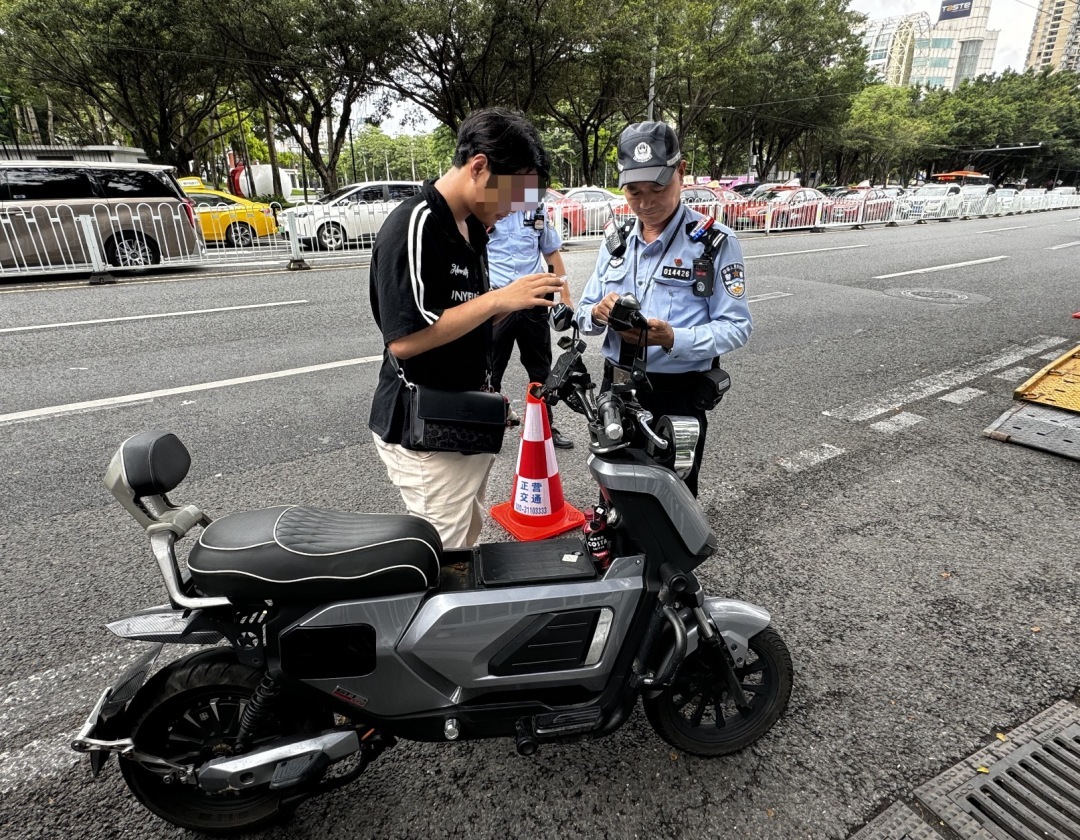 上午10时许,该地铁口周边中山三路东往西方向车道上,3辆无牌电动自行车相继被执勤交警拦下并作扣车处理。其中一名外卖小哥坦言,他所驾驶的电动自行车是其花费几百元购买的二手车,“这车上不了牌。”