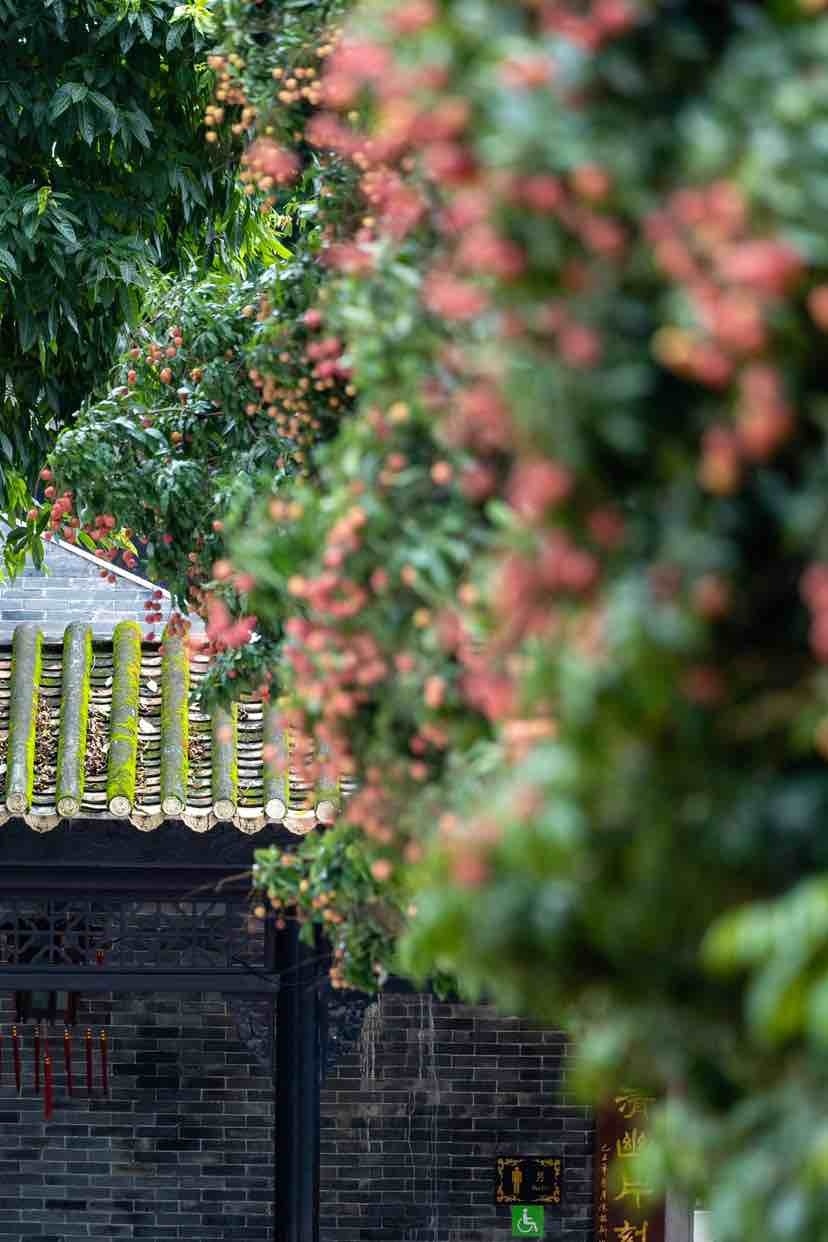 仅300米之隔的南粤苑内,荔枝树同样硕果累累,红艳的果实与青砖黛瓦、小桥流水相映成趣,成为游客最爱的拍照打卡地。
