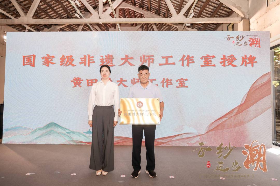 活动同期为黄田胜大师工作室授牌。2025年,黄田胜被认定为第六批国家级非物质文化遗产代表性项目名录“香云纱染整技艺”的代表性传承人。以其命名的黄田胜大师工作室将以“守正创新”为魂,守护香云纱技艺的本真。