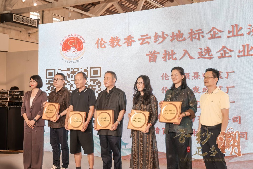 值得一提的是,现场,首批5家企业被授予官方认证“黄金二维码”,这意味着,广东香云纱首次有了“数字身份证”,充分彰显伦教作为香云纱原产地的核心地位,同时也为市场上以次充好、侵权仿冒等乱象寻找破局之策。