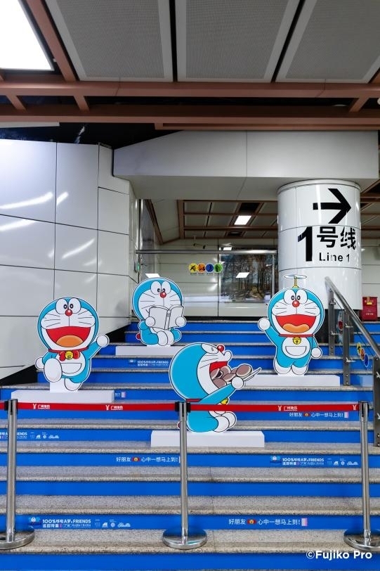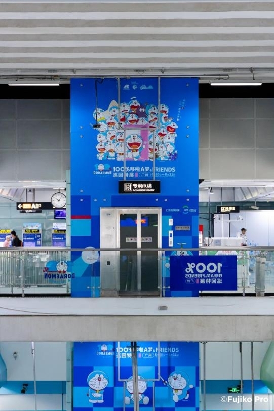 为庆祝特展广州站开幕,自5月31日起主办方联合广州地铁传媒有限公司、广州巴士集团、如约出行、广州城投商管、广东商业集团等推出“哆啦A梦城市巡游”主题活动, 广州地铁17个站的24个站台都换上了“哆啦A梦主题皮肤”,城市观光巴士及出租车也首次与国际IP联动,穿梭在广州大街小巷,引发全城打卡热潮。在海心沙亚运公园、花城汇、广州地铁博物馆、一方东山等在内的全城10余个文旅景点,“哆啦A梦‘任意门’”美陈展都成为了市民争相合照的靓丽风景线,活动期间参与打卡,还有机会获得《100%哆啦A梦&FRIENDS巡回特展》限定礼物。
