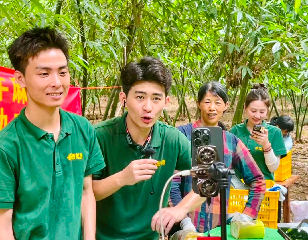 日前,网红“佛山电翰”在广东邮政官方号直播,这次,“佛山电翰”一改往日在工厂“打螺丝”的形象,手持工具深入英德西牛麻竹笋种植基地现场砍笋,通过直播镜头带领广大网友感受西牛镇的麻竹笋魅力,并大力推介这一特色农产品,直播助力农货出山。