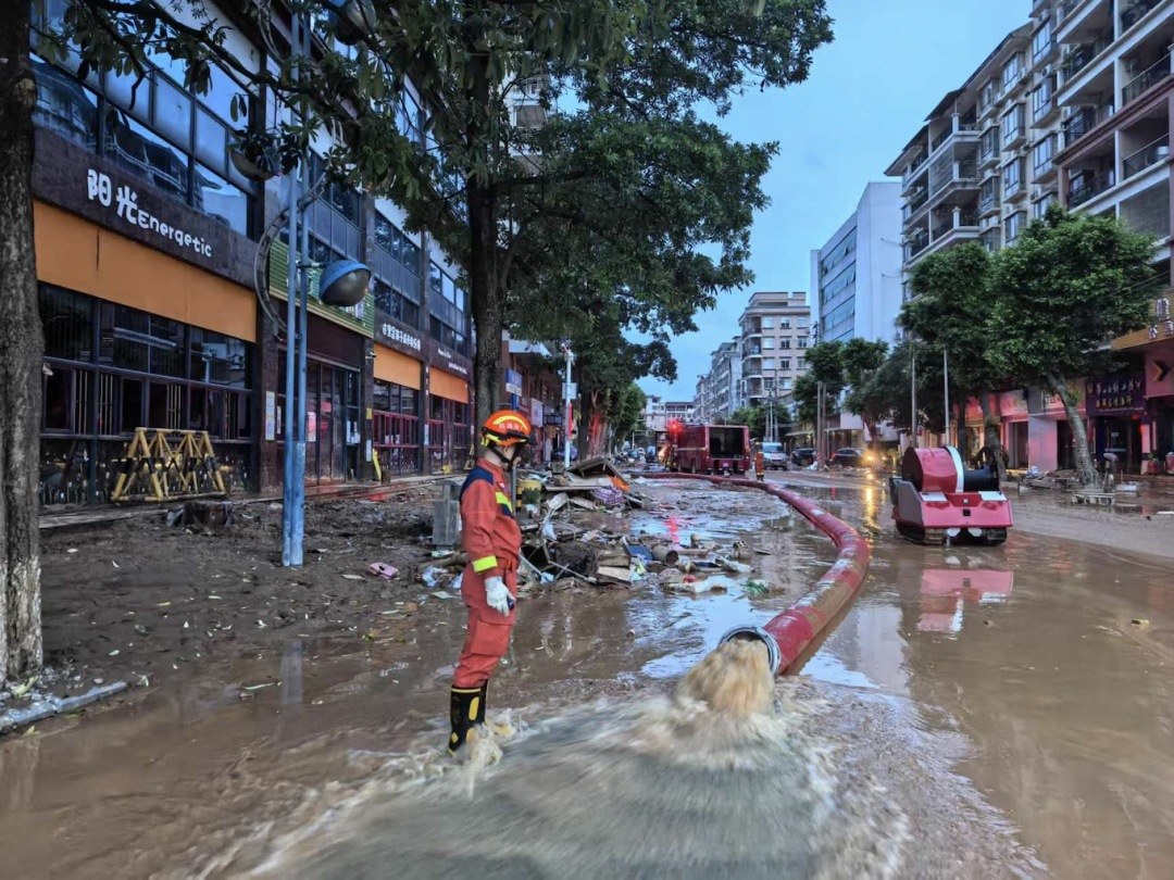 受今年第1号台风“蝴蝶”及高空槽、季风共同影响,6月14日至17日,广东省肇庆市怀集县遭遇持续强降雨,多地出现严重内涝。广州消防增援队伍迅速响应,在当地持续开展抗洪抢险工作。