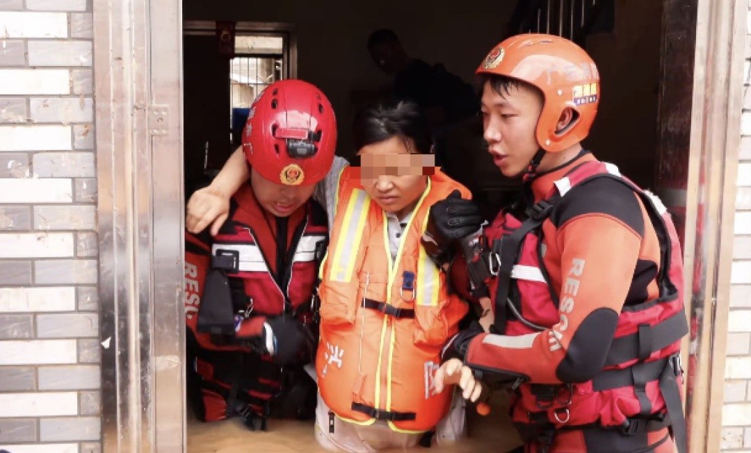 当天早上,消防救援人员在驾驶救援艇执行搜救任务时,接到群众求助信息。抵达现场后,救援人员发现一名老人正焦急地站在家门口,指着二楼方向表示还有两名儿童、一名老人和一名成年人被困。救援人员立即行动,一名消防员立即为老人穿戴救生衣,同时另一名队员携带装备迅速上楼展开救援。最终,被困的五人全部被安全转移至救援艇,并送至安全区域。