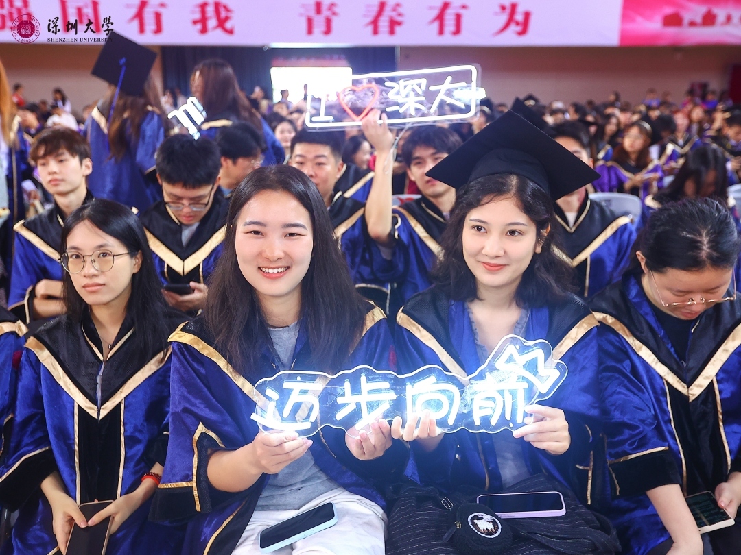 除了“敢为椅子”,谈起在深大收获的“隐形礼物”,毕业生们有好多话要说。“我最难忘的是坐荔园小巴刷卡时‘滴’声之后的‘成功’!”机电与控制工程学院本科毕业生方瑞杰不舍地说。文学院硕士毕业生贾宁认为,最珍贵的“隐形礼物”是她的哲学写作老师,让她在学术上、思想上受益良多。材料学院硕士毕业生田乐源说,荔园的好朋友是她收获的最好礼物,“未来不管我在哪里,我们的光芒都会照亮彼此。”政府管理学院本科毕业生何怡婷收获的则是校训中的“自律”:“在深大这样自由、多元的发展空间里,我真正体会到了‘自律即自由’。”物理与光电工程学院博士毕业生陈国杰在深大度过了硕博连读的五年时光,他收获的最珍贵“隐形礼物”是全方位的成长与蜕变:“这里不仅给了我知识,更培养了我的独立思考能力、抗压韧性和开放包容的心态。”他说,这份“软实力”将成为自己未来人生中最宝贵的财富。