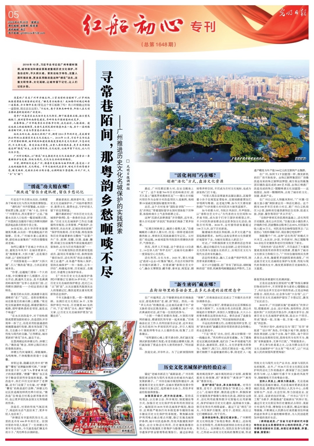 广州牢记嘱托,以“绣花”功夫推进历史文化名城保护,探索出一条兼顾保护与发展、传统与现代、文化与生活的创新路径。