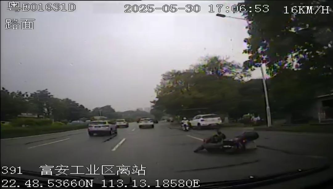 5月30日下午5点6分,顺汽公交大良车队391路公交车驾驶员赖双扬驾驶公交车途经富安工业区公交站时,发现前面有一辆电动车横倒在路面上,车主被压住无法起身,赖双扬立即安全停车,下车帮扶车主并把电动车推至路边,确认车主无大碍后返回公交车继续营运工作。