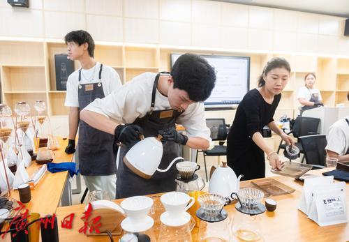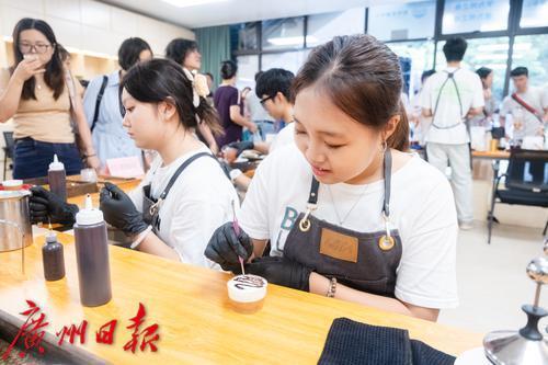 学生现场制作咖啡。