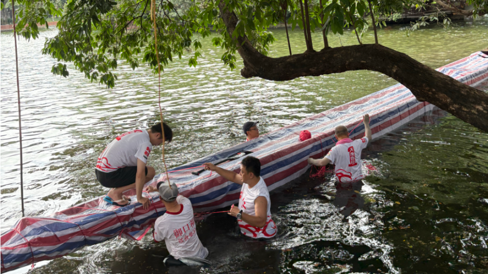 【广州400多岁老龙沉入湖底,荔湾泮塘村举行藏龙仪式】6月22日下午,广州荔湾泮塘村举行藏龙仪式,将包括400多岁泮塘老龙在内的多条龙船送回位于荔湾湖底的龙船窦,庆祝整个龙船季平安、圆满地结束。查看详情>>