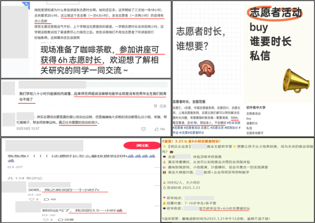 互联网上开始出现一些“应付式”甚至“商品化”的刷志愿服务时长服务。有需求就会有市场,这时要思考的或许不仅仅是怎么打压逐利行为。