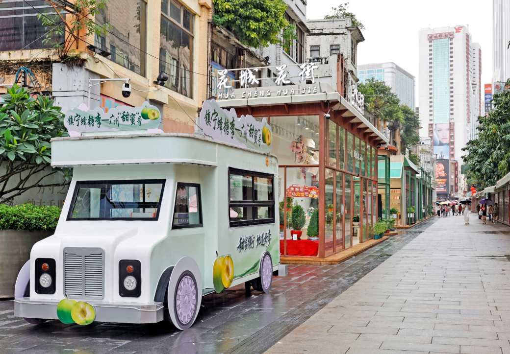 在潮楼和北京路天河城之间,一栋色彩明快的居民楼格外活泼,外墙上“I ❤ 北京路”(我爱北京路)的大型标志成为新晋打卡点。设计团队说:“这原来是一栋灰色的居民楼,低沉的色调和步行街的商业氛围并不匹配。我们采用简单的手法进行改造,在外立面增加色彩的拼贴,而且不遮挡居民的窗户和阳台。”改造后,两大商业综合体之间的“断点”连起来了,步行街的暗区亮起来了。