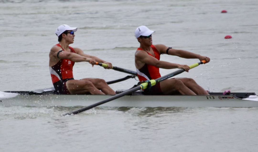 黄湘仪和梁琼允是香港赛艇队女子双人艇的搭档,与赵显臻、林新栋一样是香港本土选手,梁琼允曾获得杭州亚运会的银牌。第一次到这里比赛的她们认为广东国际划船中心的场地体验感很好,还有很重要的一点是这里的工作人员都同声同气,语言沟通顺畅,所以既有新鲜感,又觉得熟悉和亲切。她们都是赛艇项目进校园推广的时候接触到赛艇,从兴趣班起步,然后逐渐燃起了好胜心,喜欢比赛竞争的感觉,最后成为职业运动员。二人都说训练真的非常辛苦,都因热爱而坚持。她们表示,对参加全运会非常期待,因为能跟奥运冠军同场竞技,所有比她们划得快的选手都是其追赶的目标,她们也期待能在明年的亚运会站上领奖台。