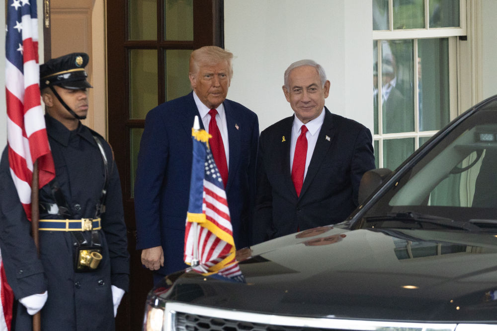4月7日,美国总统特朗普在华盛顿白宫迎接到访的以色列总理内塔尼亚胡。新华社记者胡友松摄